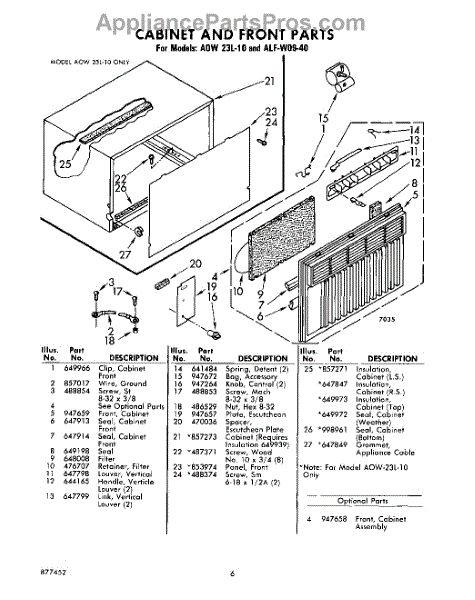 Parts for Whirlpool ALFW0940: 06 - Cabinet And Front Parts