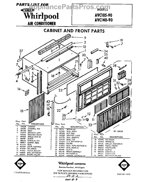 Parts for Whirlpool AVC10590: 01 - Cabinet And Front Parts