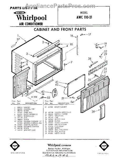 Parts for Whirlpool AWC11021: 01 - Cabinet And Front Parts