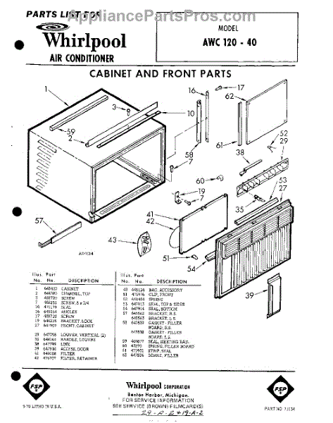 Parts for Whirlpool AWC12040: 01 - Cabinet And Front Parts