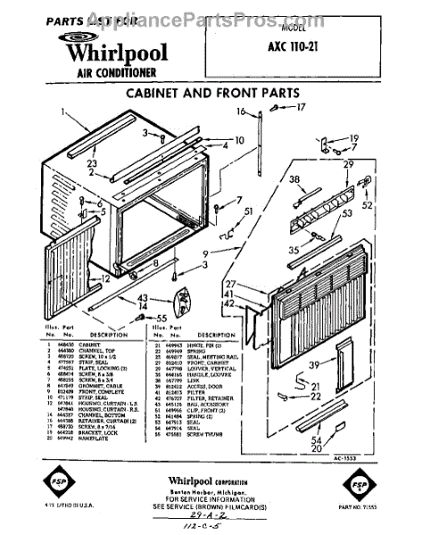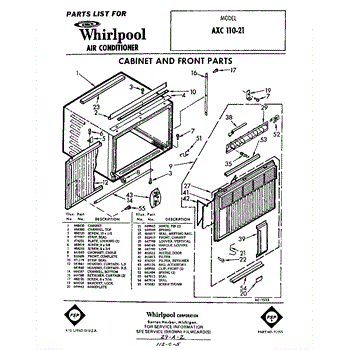 Parts for Whirlpool AXC11021: 01 - Cabinet And Front Parts