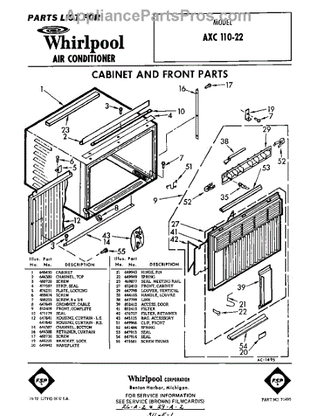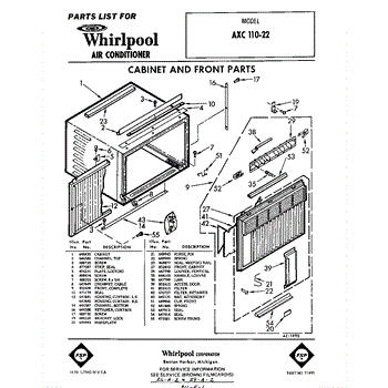 Parts for Whirlpool AXC11022: 01 - Cabinet And Front Parts