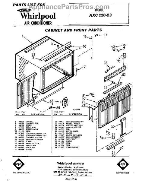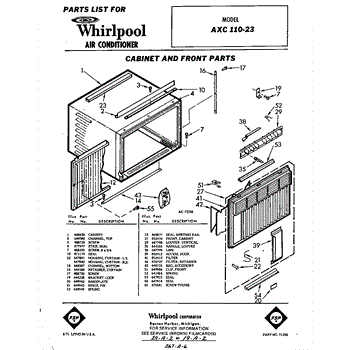 Parts for Whirlpool AXC11023: 01 - Cabinet And Front Parts