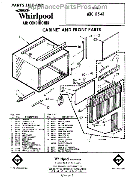 Parts for Whirlpool AXC11541: 01 - Cabinet And Front Parts