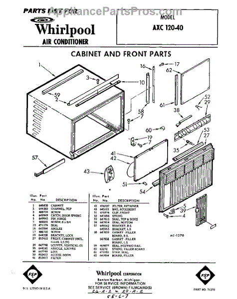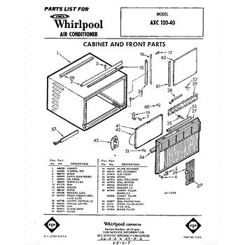 Parts for Whirlpool AXC12040: 01 - Cabinet And Front Parts