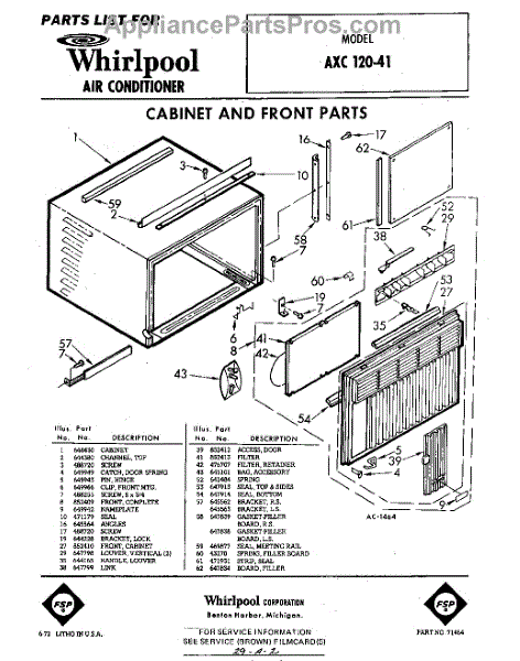 Parts for Whirlpool AXC12041: 01 - Cabinet And Front Parts