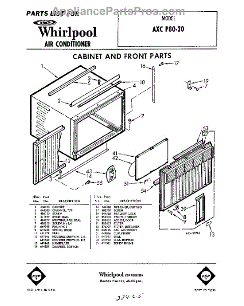 Parts for Whirlpool AXCP8020: 01 - Cabinet And Front Parts