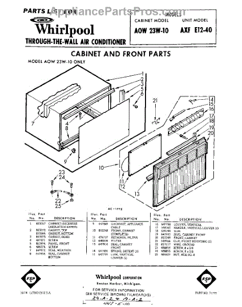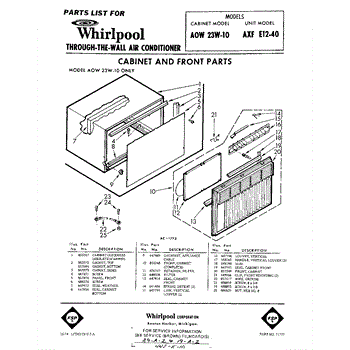 Parts for Whirlpool AXFE1240: 01 - Cabinet And Front Parts