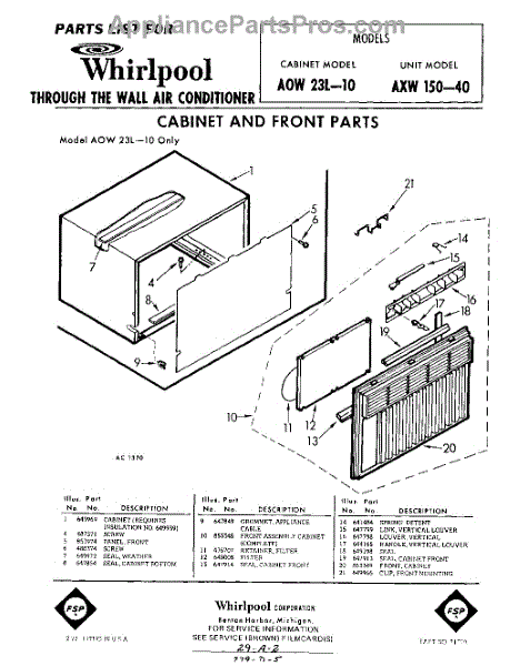 Parts for Whirlpool AXW15040: 01 - Cabinet And Front Parts