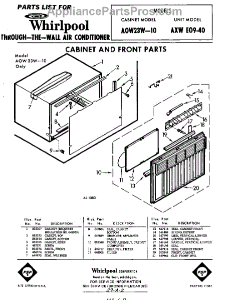 Whirlpool Air Conditioner Parts