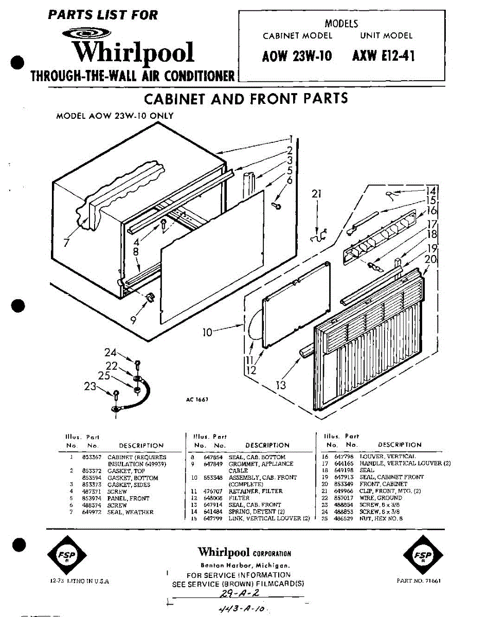 Parts for Whirlpool AXWE1241: 01 - Cabinet And Front Parts