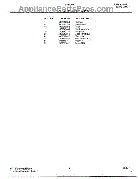 Parts for Frigidaire 5137006A: Cabinet Front And Wrapper Page 2 Parts