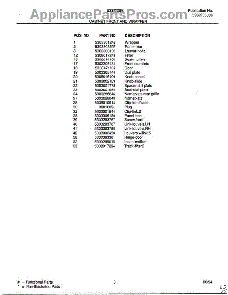 Parts for Frigidaire 5338009B: Cabinet Front And Wrapper Page 2 Parts