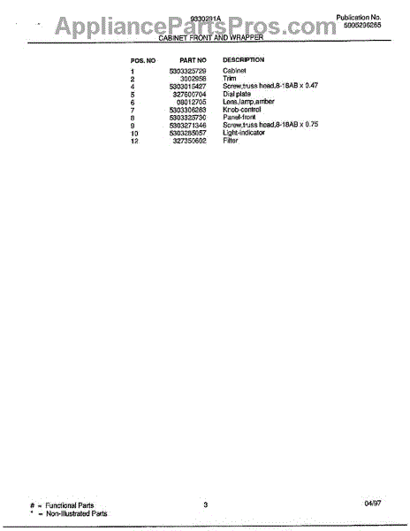 Parts for Frigidaire 9330201A: Cabinet Front And Wrapper Page 2 Parts