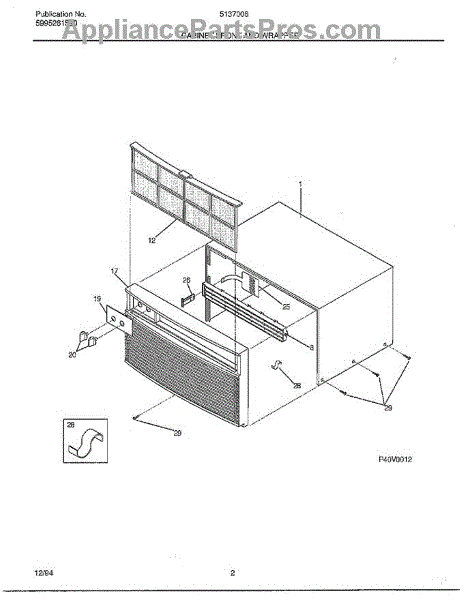 Parts for Frigidaire 5137006A: Cabinet Front And Wrapper Parts