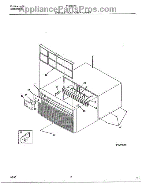 Parts for Frigidaire 5137007E1: Cabinet Front And Wrapper Parts