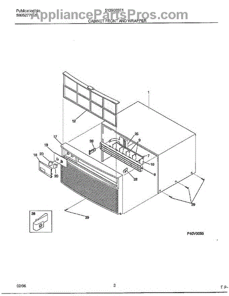 Parts for Frigidaire 5139008E1: Cabinet Front And Wrapper Parts