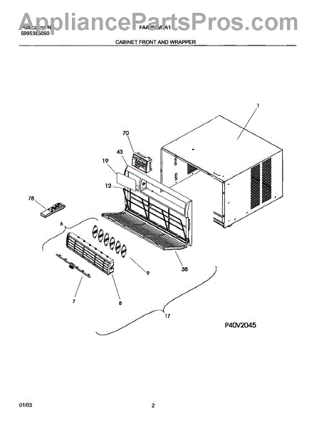 Parts for Frigidaire FAA055M7A1: 03 - Cabinet Front And Wrapper Parts