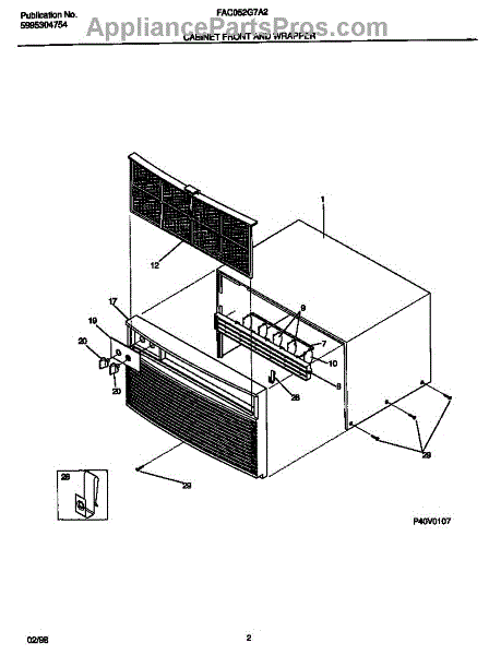 Parts for Frigidaire FAC052G7A2: 02 - Cabinet Front And Wrapper Parts