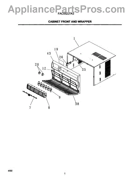 Parts for Frigidaire FAC052J7A3: 02 - Cabinet Front And Wrapper Parts