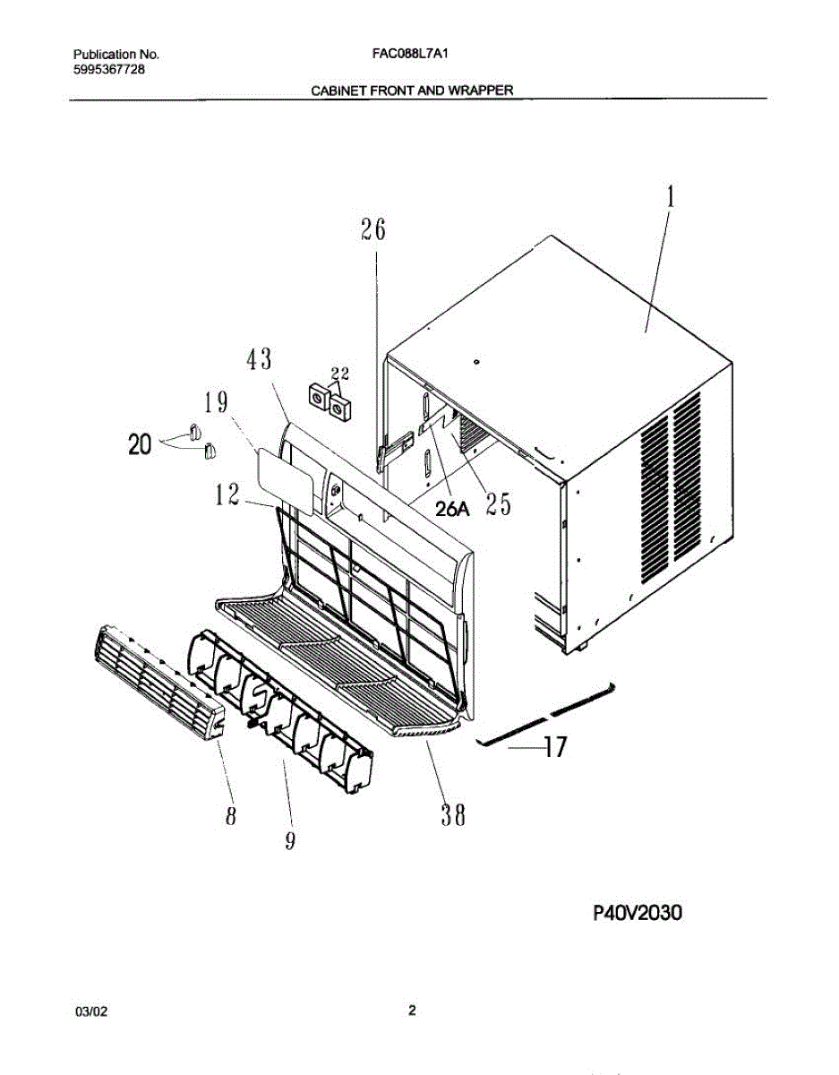 Parts for Frigidaire FAC088L7A1: 03 - Cabinet Front And Wrapper Parts