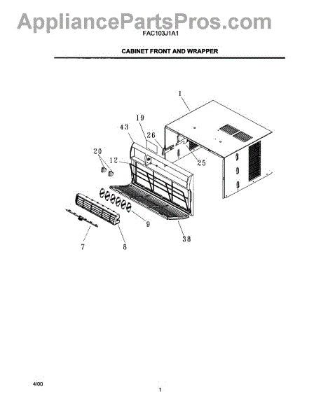 Parts for Frigidaire FAC103J1A1: 03 - Cabinet Front And Wrapper Parts