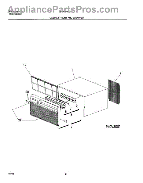 Parts for Frigidaire FAH086M1T1: 03 - Cabinet Front And Wrapper Parts