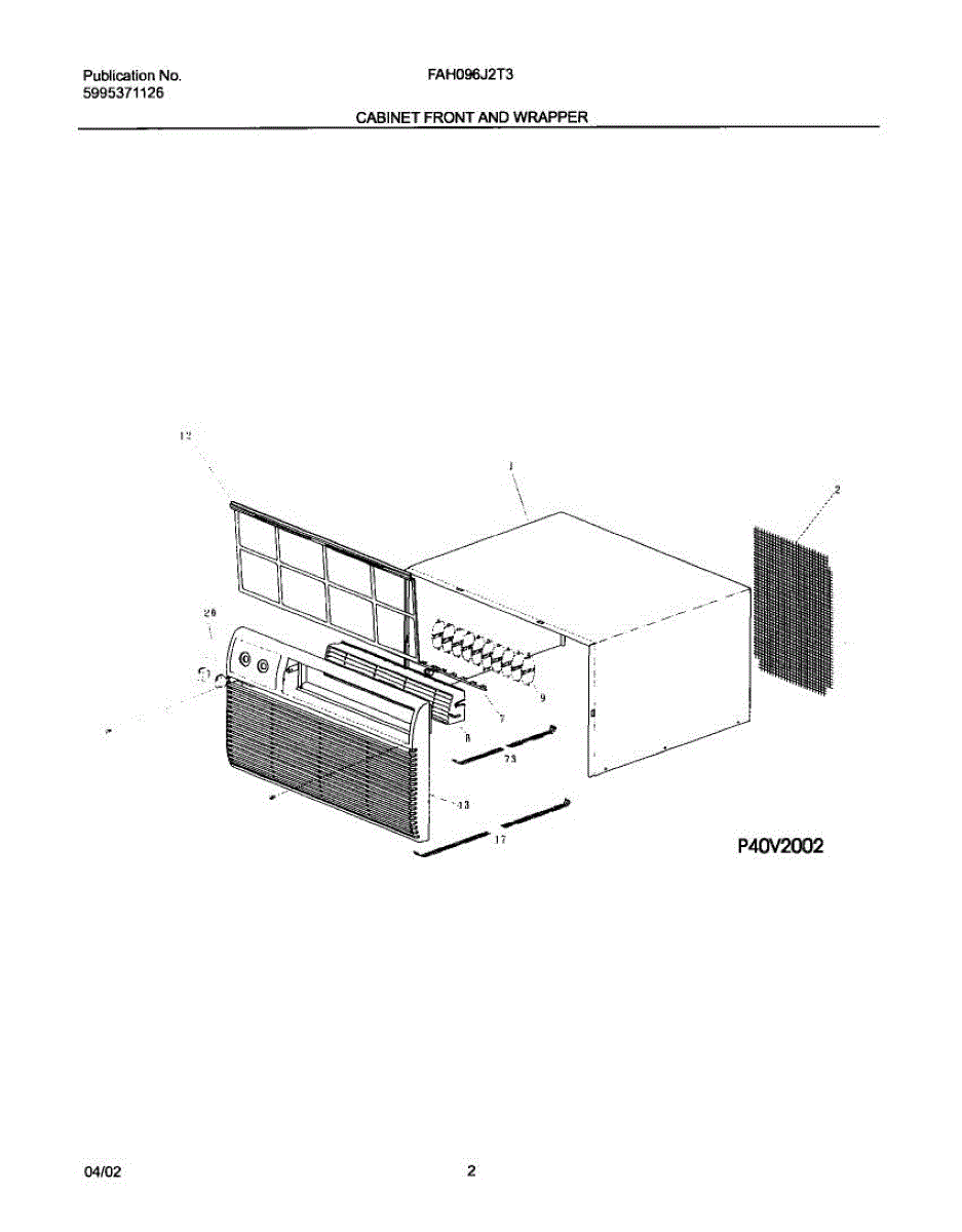 Parts for Frigidaire FAH096J2T3: 03 - Cabinet Front And Wrapper Parts