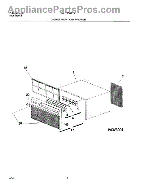 Parts for Frigidaire FAH10EM2T1: 03 - Cabinet Front And Wrapper Parts