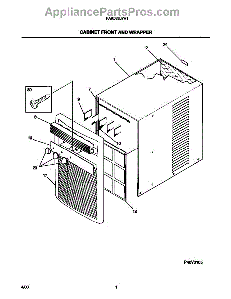 Parts for Frigidaire FAK083J7V1: 02 - Cabinet Front And Wrapper Parts