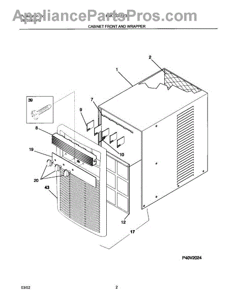 Parts for Frigidaire FAK103J1V3: 03 - Cabinet Front And Wrapper Parts