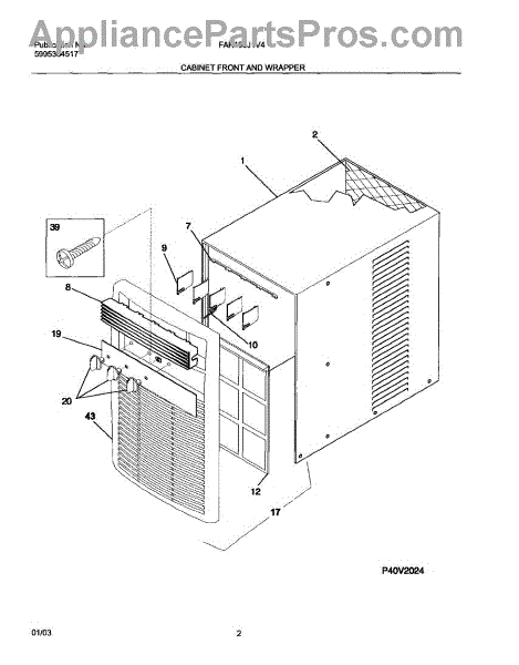 Parts for Frigidaire FAK103J1V4: 03 - Cabinet Front And Wrapper Parts