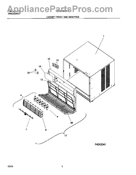 Parts for Frigidaire WAA053M7A1: 03 - Cabinet Front And Wrapper Parts