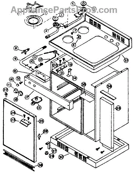 Parts for Kenmore 612.7986423 (6127986423, 612 7986423): Cabinet And Gas Parts