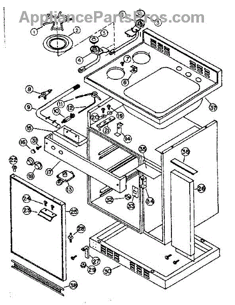 Parts for Kenmore 612.7985423 (6127985423, 612 7985423): Cabinet And Gas Unit Parts