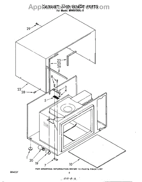 Parts for Whirlpool MW8100XL0: 04 - Cabinet And Hinge Parts