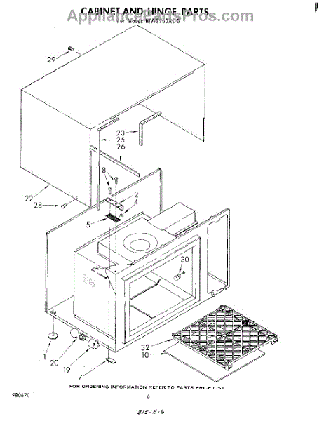 Parts for Whirlpool MW8750XL0: 04 - Cabinet And Hinge Parts