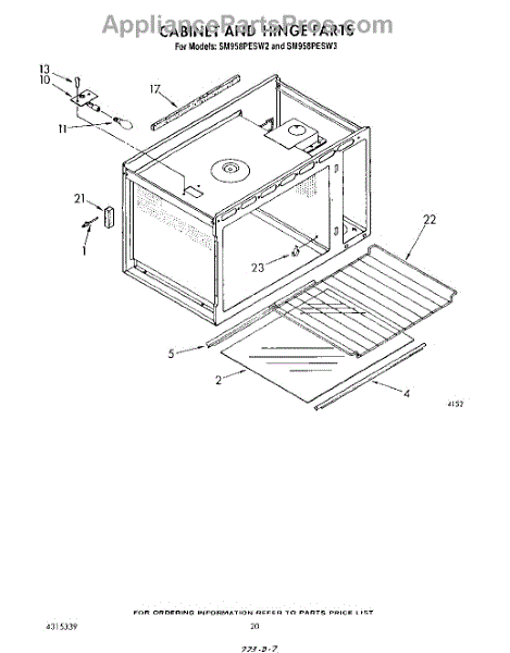 Parts for Whirlpool SM958PESW3: 13 - Cabinet And Hinge Parts