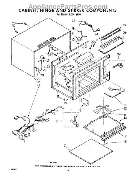 Parts for Whirlpool RGM1880P: 08 - Cabinet, Hinge And Stirrer Component Parts