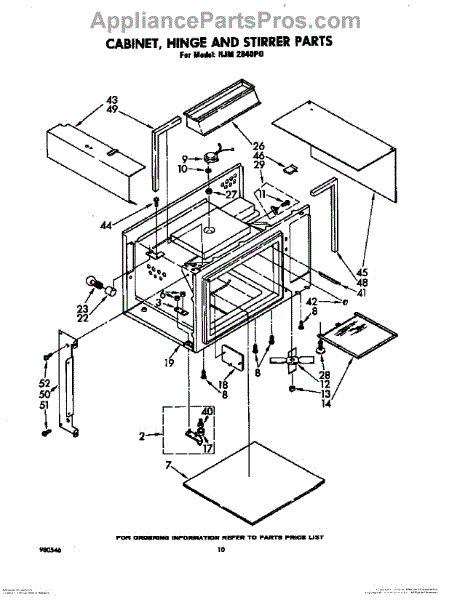 Parts for Whirlpool RJM2840P0: 10 - Cabinet, Hinge And Stirrer Parts