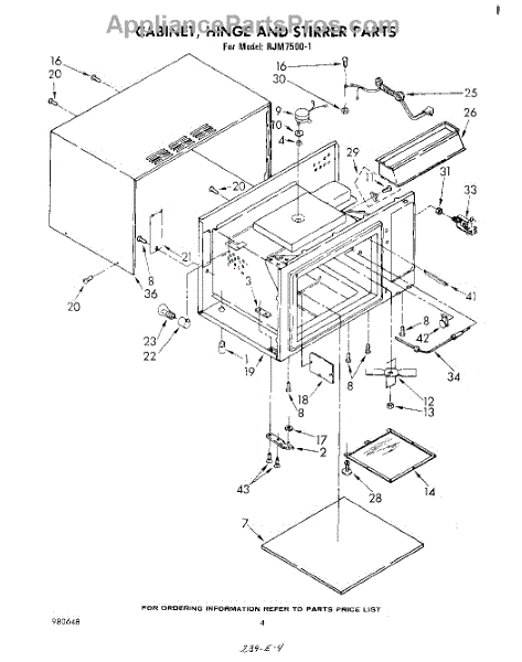 Parts for Whirlpool RJM75001: 03 - Cabinet, Hinge And Stirrer , Literature Parts