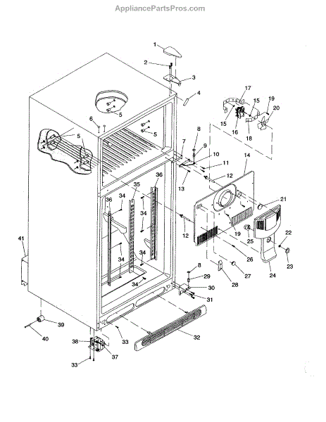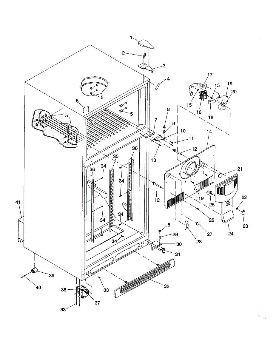 Parts for Amana DRT2142BC-PDRT2142BC0: Cabinet / Hinges / Evap Fan / Rollers Parts