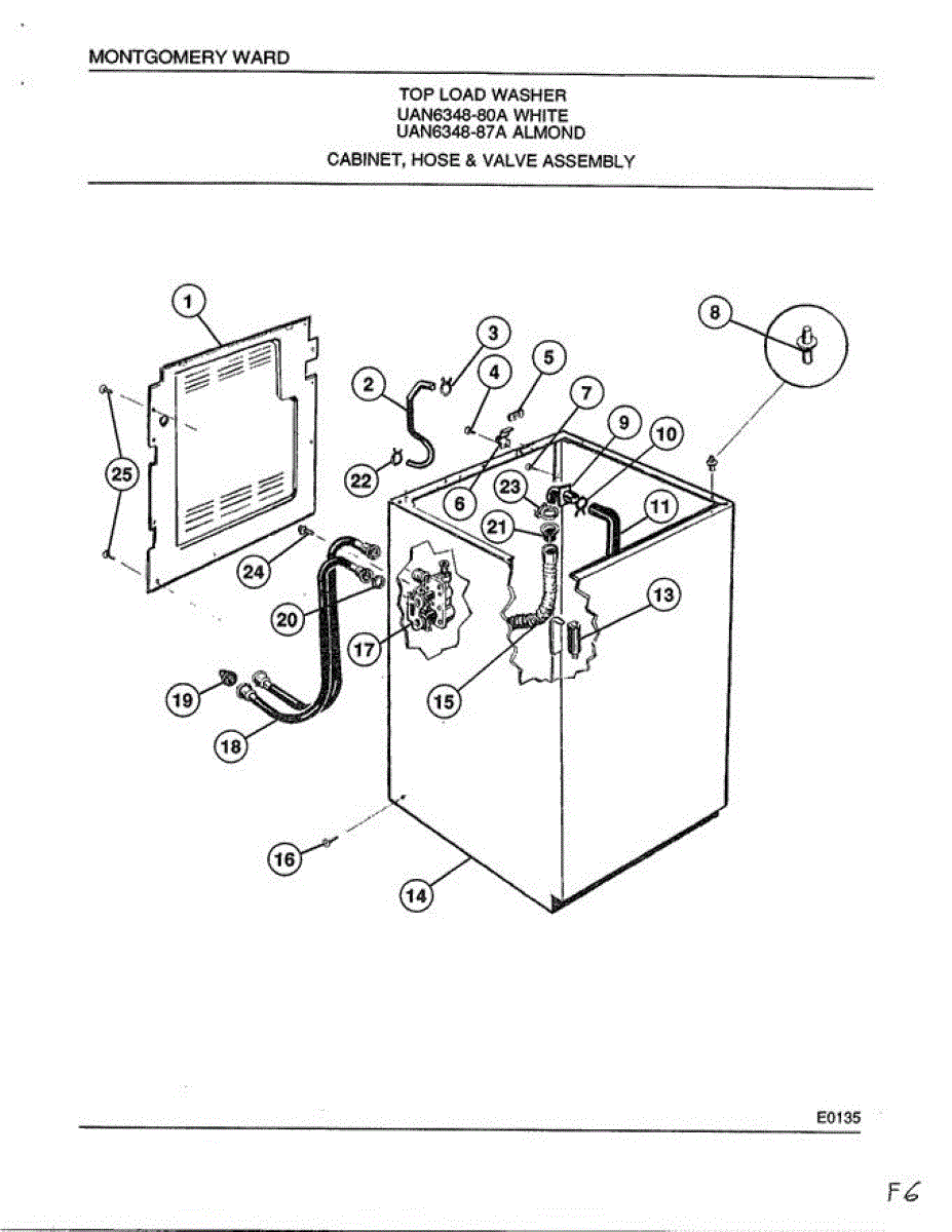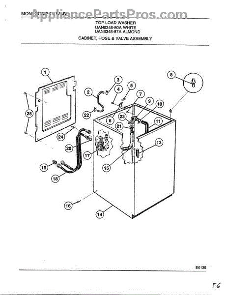 Parts for Frigidaire 6348A: Cabinet, Hose And Valve Assembly Parts