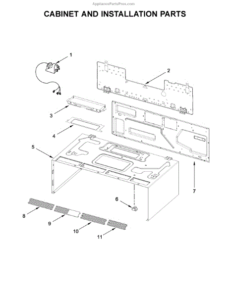 Wall mounting plate assembly for over-the-range microwaves. Secures microwave to wall brackets during installation. Replace if warped, cracked, or missing.