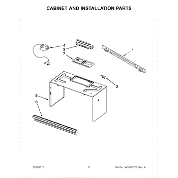 The Upper Cabinet Template is an OEM part for Whirlpool microwaves. This template is used during the installation of the microwave to ensure correct placement and alignment within the upper cabinet, providing guidance for drilling holes and securing the microwave in place.