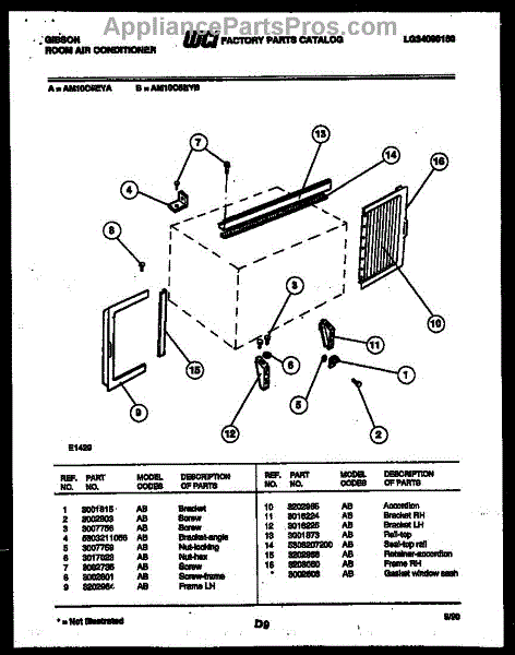 Parts for Frigidaire AM10C5EYB: 08 - Cabinet And Installation Parts