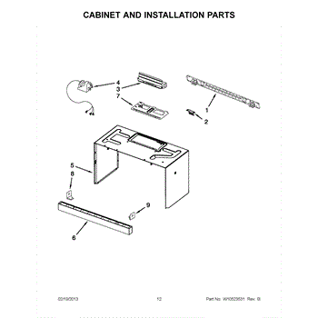 The Upper Cabinet Template is an OEM part for Whirlpool microwaves. This template is used during the installation of the microwave to ensure correct placement and alignment within the upper cabinet, providing guidance for drilling holes and securing the microwave in place.