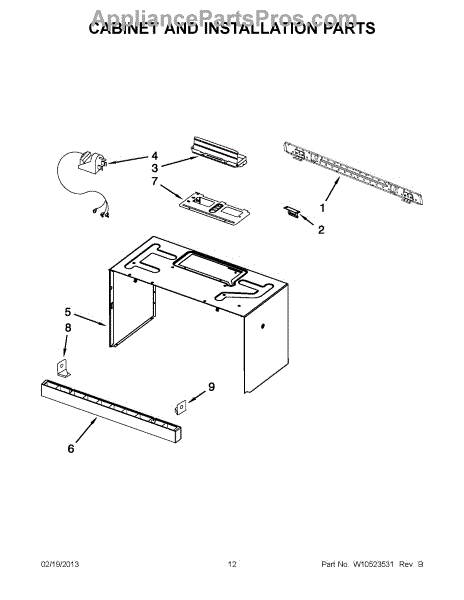 The Upper Cabinet Template is an OEM part for Whirlpool microwaves. This template is used during the installation of the microwave to ensure correct placement and alignment within the upper cabinet, providing guidance for drilling holes and securing the microwave in place.