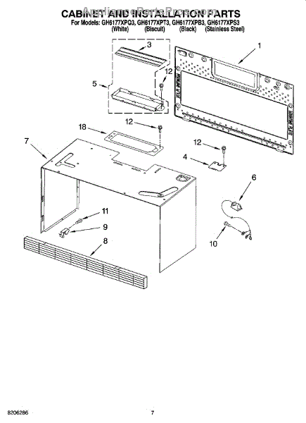 Parts for Whirlpool GH6177XPB3: 06 - Cabinet And Installation Parts