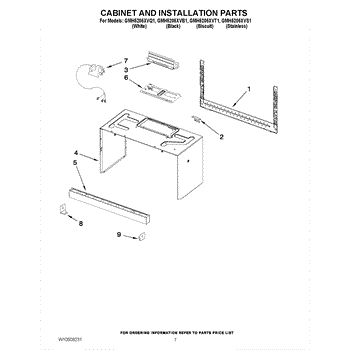 The Upper Cabinet Template is an OEM part for Whirlpool microwaves. This template is used during the installation of the microwave to ensure correct placement and alignment within the upper cabinet, providing guidance for drilling holes and securing the microwave in place.